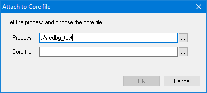 Attach to Core file: