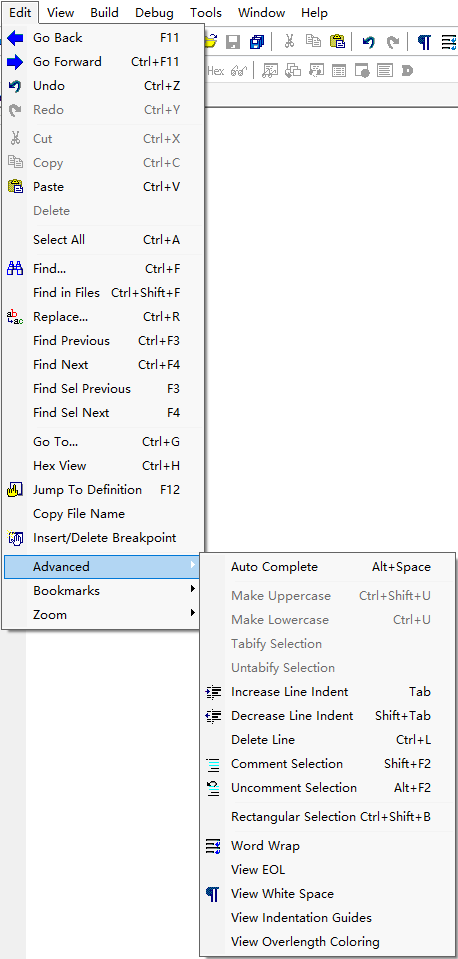| Insert/Delet Breakpoint | Insert or Delet Breakpoint in current document. |