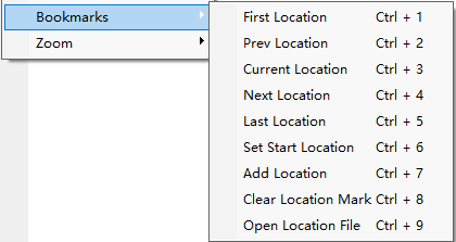 | Bookmarks | Define Start Location | Define current line as Starting Location. |