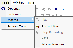| Macros | Macro Manager... | Show the Macro Manager dialog. |