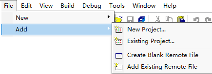 | Add | Add Existing Remote File | Add an existing remote file to the project. See More... |